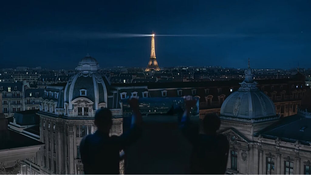 La pub débute sur une vue de Paris et de la tour Eiffel. On voit ensuite trois silhouettes vêtues de noir qui arpente les toits. On voit ensuite la DS n°4 qui apparaît l’écran. Les hommes prennent une glace et la place de façon à capter les lumières qui viennent de la Dame de Fer. Le faisceau de lumière se réverbère sur la voiture, la mettant en valeur. Cela semble éveiller le véhicule qui commence à s’illuminer. Les reflets et les ombres interagissent avec les lignes du véhicule, soulignant son design élégant et moderne. On voit ensuite la DS n°4 qui circule dans les rues de Paris et le slogan de la pub qui s’affiche : la lumière lui va si bien.